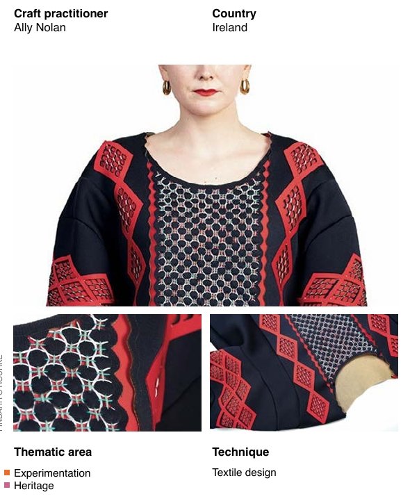 Nolan is profiled in the Craft Hub EU Catalogue, highlighting her research-led textile practice combining heritage craft with contemporary technologies.