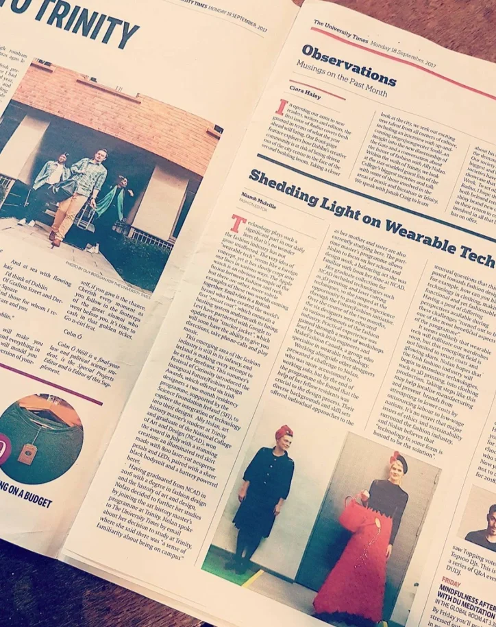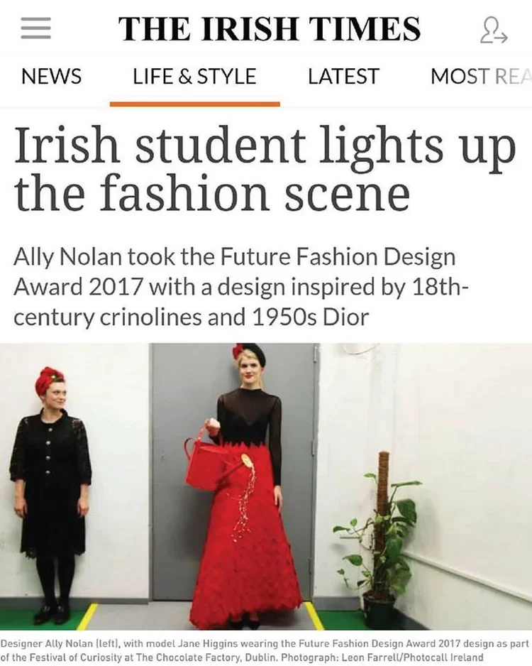 Highlighted by the Irish Independent as one of the rising designers to watch ahead of the Dublin Fashion Festival’s Young Designer of the Year competition.